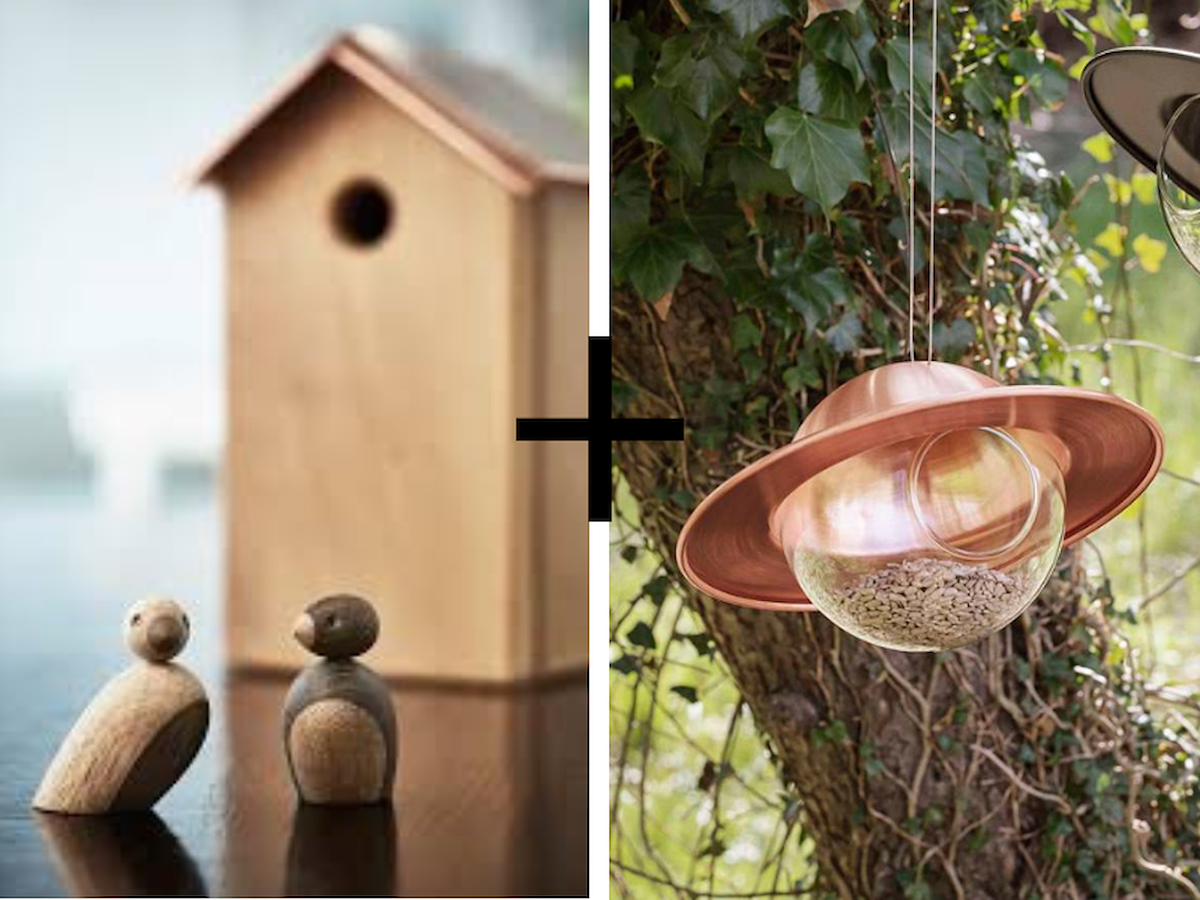 Kay Bojesen Spurvepar eg/røget eg samt Saturn fuglefoderkugle