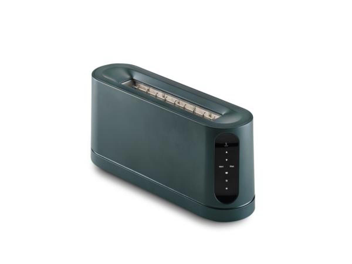 Brødristeren har metalkrop med lang åbning og blød løftemekanisme, bevægelsesaktiveret display med funktionerne ristetid, bagel, genopvarmning og optøning.