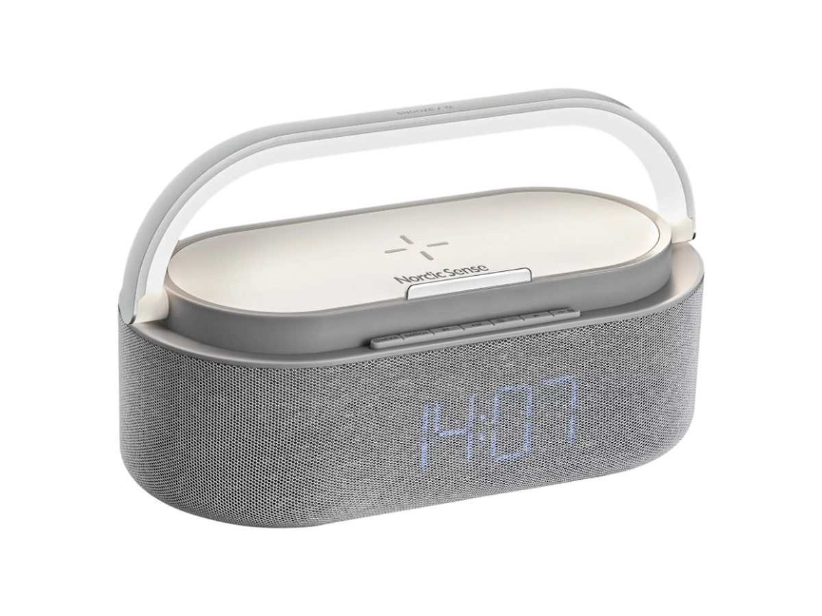 Vækkeur med smarte funktioner – alt-i-én løsning til natbordet. Lyt til musik med den indbyggede højttaler og oplad telefonen med den trådløse oplader. Uret har også justerbart LED-lys, alarmfunktion, FM-radio og en praktisk telefonholder. Kort om vækkeurets funktioner: • Højttaler • Trådløs oplader • Justerbart LED-lys • FM-radio og alarm • Telefonholder