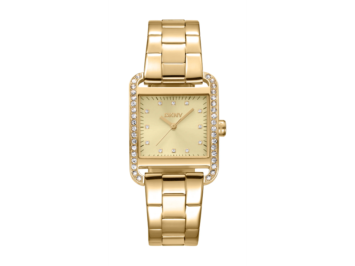 DKNY City Glitz Dameur i rustfrit stål med guld PVD og urkasse med krystaller - 27x34,5 mm