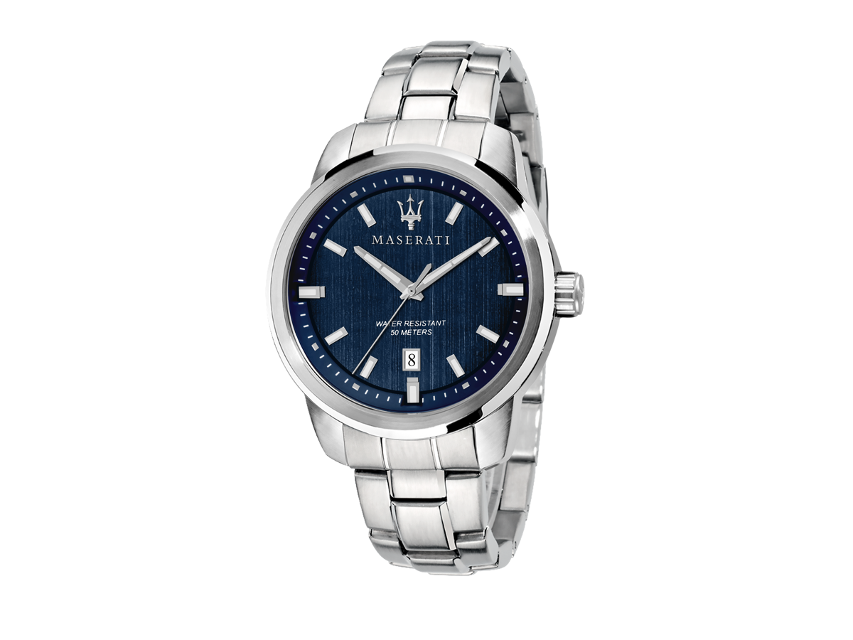 • Maserati herreur Successo, 45 mm. Stål med blå urskive.
