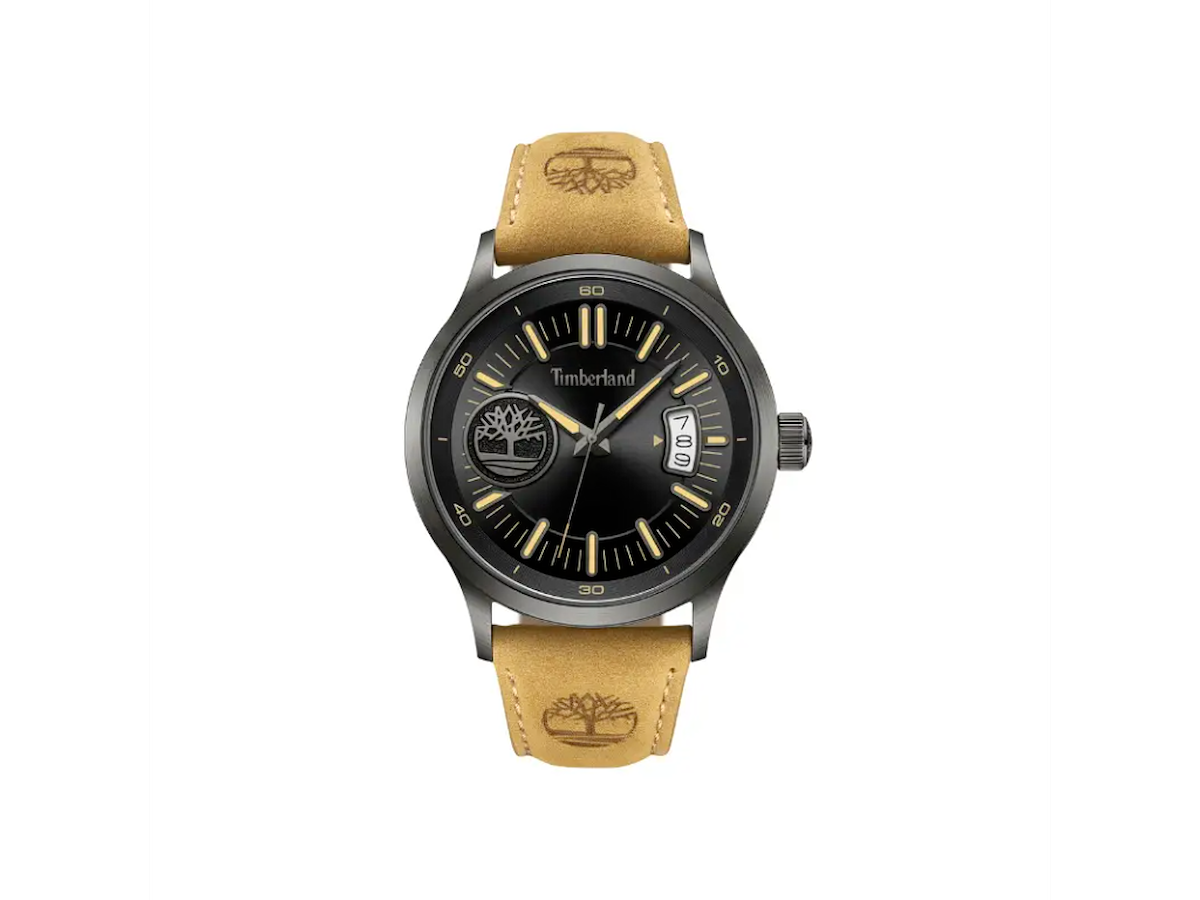 Maskulint herreur fra Timberland. Klassisk stålur med elegant matsort skive og stilrene visere og indeks i Timberlands signaturfarver.