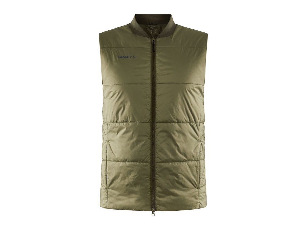Alsidig vest med tynd polstring i recycled materiale, to sidelommer, lige pasform og blød ribstrikket krave.