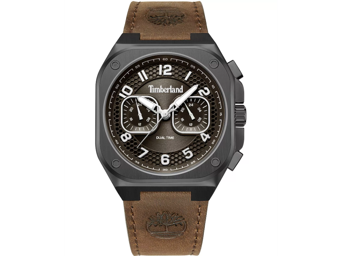 Timberland Mackinac multifunktion Herreur i rustfrit stål med blå multi-lags urskive og brun urrem - Ø 41 mm
