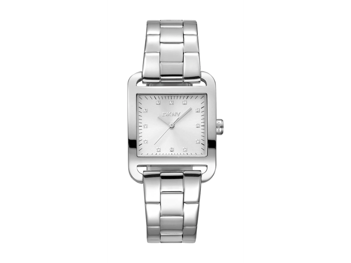 DKNY City Midi Dameur i rustfrit stål på lænke med sølv urskive - 27x34,5 mm