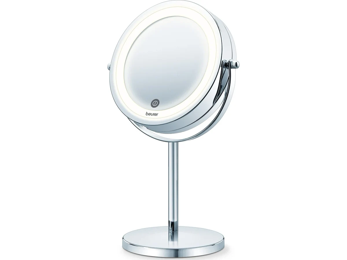 Med 7 x forstørrelse og justerbar tilpasning af lysstyrken BS 55 er et smart 2-i-1 makeup spejl fra Beurer i et eksklusivt design med praktisk vippe-funktion. Spejlet er fremstillet med en flot blank overflade af krom og en praktisk touch knap i spejlets kant, tillader dig nemt at tilpasse lysstyrken på spejlets 18 LED pærer, med en enkelt berøring. Vippespejlet har 2 sider; 1 side med 7 x forstørrelse og 1 side med normalt spejl. Der er lys i begge spejle og lyset kan hurtigt op- og nedjusteres ved at trykke og holde tændknappen inde, indtil lysstyrken er som ønsket. Spejlet har en diameter på 13 cm og lyset slukker automatisk efter 15 min, så du kan spare på batterierne! Type: Makeup spejl med lys Regulerbar lysintensitet: Ja Lys: 18 ultra skarpe LED pærer Touch sensor: Ja, ved tænd/sluk for lys Overflade: Højkvalitets krom finish Spejlareal: Ø 13 cm Mål: 20,5 x 31,5 x 13,4 cm Vægt: 0,938 kg (uden batterier) Batterier: 4 x 1,5V AAA batterier (medfølger)