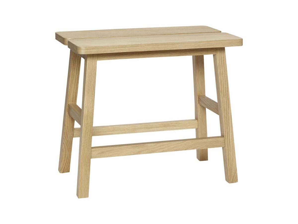 • Denne skammel har et rent og minimalistisk design. Den er fremstillet af FSC-certificeret egetræ. Skamlens design gør den alsidig i sin brug. Du kan placere den i gangen, køkkenet, stuen eller ethvert andet rum i dit hjem.