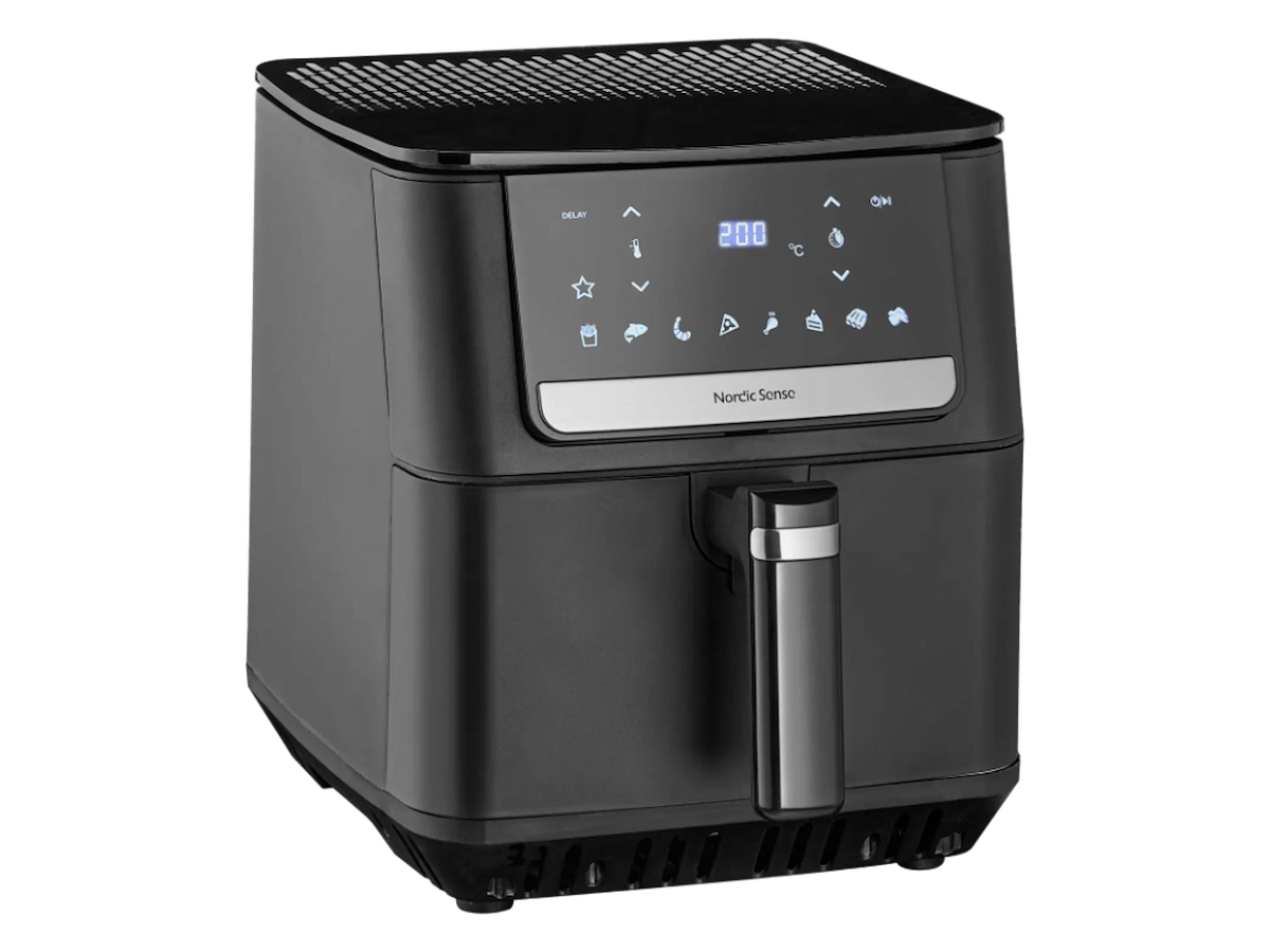 Denne airfryer på 6,5 liter gør det nemt at lave lækker, sund mad på kort tid. Med dens smarte funktioner og gennemtænkte design kan du tilberede alt fra sprøde pommes frites til saftige kyllingestykker. Airfryeren er perfekt til både travle hverdage og hyggelige aftener, hvor du gerne vil lave mad, der smager fantastisk – helt uden brug af store mængder olie. Effektiv madlavning med perfekt varmefordeling Airfryeren er udstyret med 8 forudindstillede programmer, der sikrer indstillinger til en bred vifte af retter. Med den justerbare temperaturkontrol fra 40 til 200 °C kan du bage, stege eller genopvarme med perfekte resultater hver gang. Takket være et varmeelement i både top og bund, får du en optimal varmefordeling – ideelt til at opnå sprøde kanter og saftig midte. Fleksibilitet og nem rengøring Praktisk kurv med non-stick belægning gør rengøring nemmere og sikrer, at maden slipper let, mens den justerbare rist giver dig mulighed for at tilberede to slags mad samtidig. Kort om airfryerens funktioner: • 8 forudindstillede programmer: Gør madlavningen let og hurtig med præcise indstillinger til forskellige retter. • Justerbar temperaturkontrol: Justér temperaturen fra 40 til 200 °C for at opnå det perfekte resultat. • Non-stick kurv: Let at rengøre og sikrer, at maden slipper let. • Sikkerhed i fokus: Indbygget overophedningsbeskyttelse giver tryghed under brug. • Fleksibelt design: Justerbar rist gør det muligt at tilberede to slags mad samtidig. • Over- og undervarme: Der er varmeelementer placeret både foroven og forneden, som sikrer en jævn tilberedning.