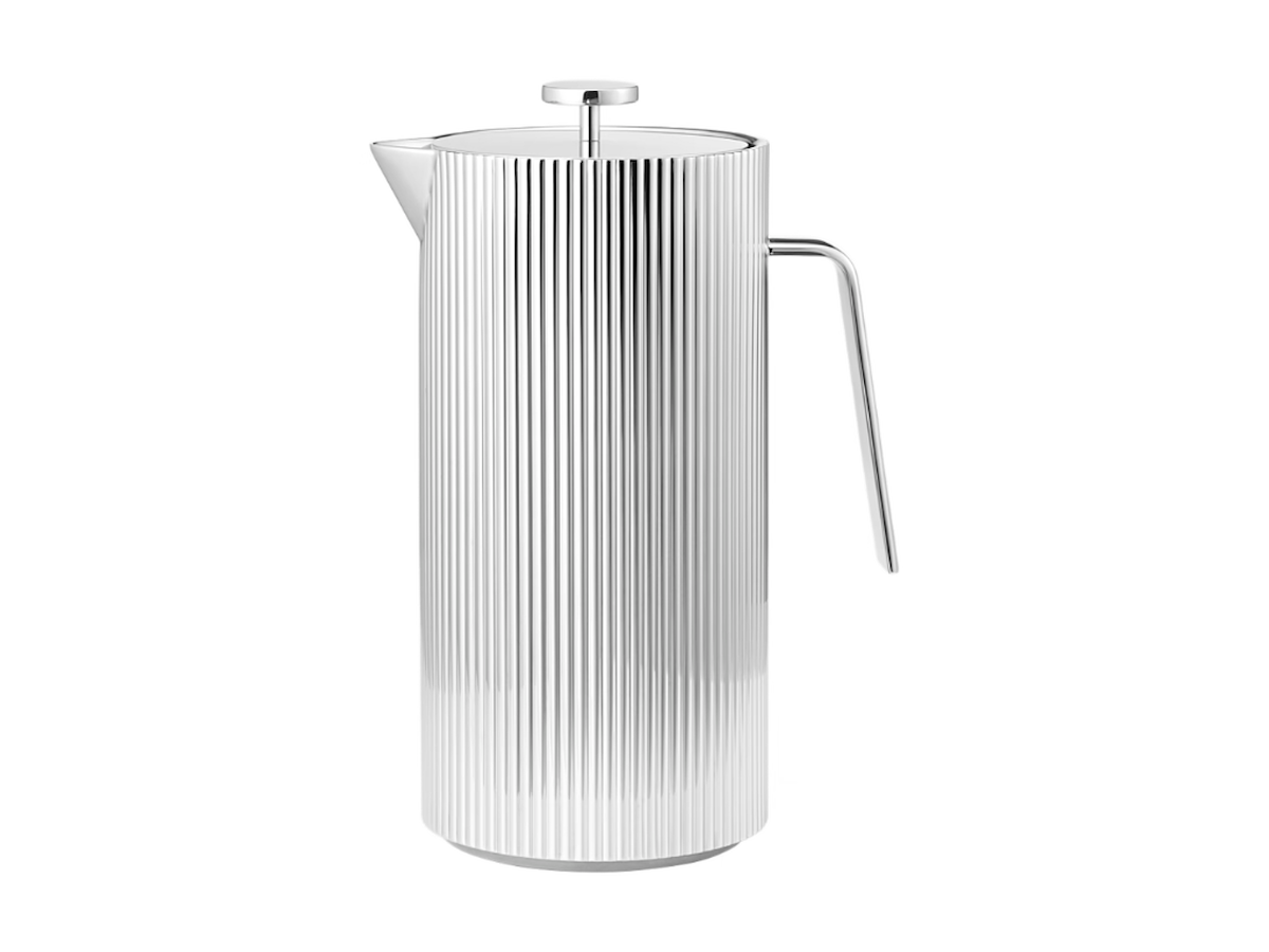 Den karakteristiske og elegante rillede overflade på Bernadotte-kollektionens franske stempelkande giver bordet et umiskendeligt strejf af art deco. Stempelkanden er smukt udført i blankpoleret rustfrit stål og er dobbeltvægget for at holde kaffen varm lidt længere. Filteret af rustfrit stål er desuden nemt at rengøre.