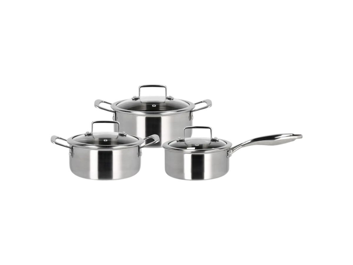 Grydesættet indeholder en kasserolle på 1,2 liter samt gryder på 2 og 2,7 liter, alle med låg. Hybrid 3ply-serien er fremstillet af rustfrit stål med keramisk hybrid-belægning, der sikrer gode stegeegenskaber og let rengøring. Bemærk, at 3-ply-konstruktionen med sin struktur af to lag rustfrit stål og et lag aluminium i midten, opvarmes meget hurtigt. Vær derfor forsigtig med ikke at overophede, men varm gryder og pander langsomt op. Det hævede mønster beskytter belægningen i bunden af gryder og pander og forlænger deres levetid, og det keramiske toplag giver en god non-stick-effekt. Produceret uden PFAS