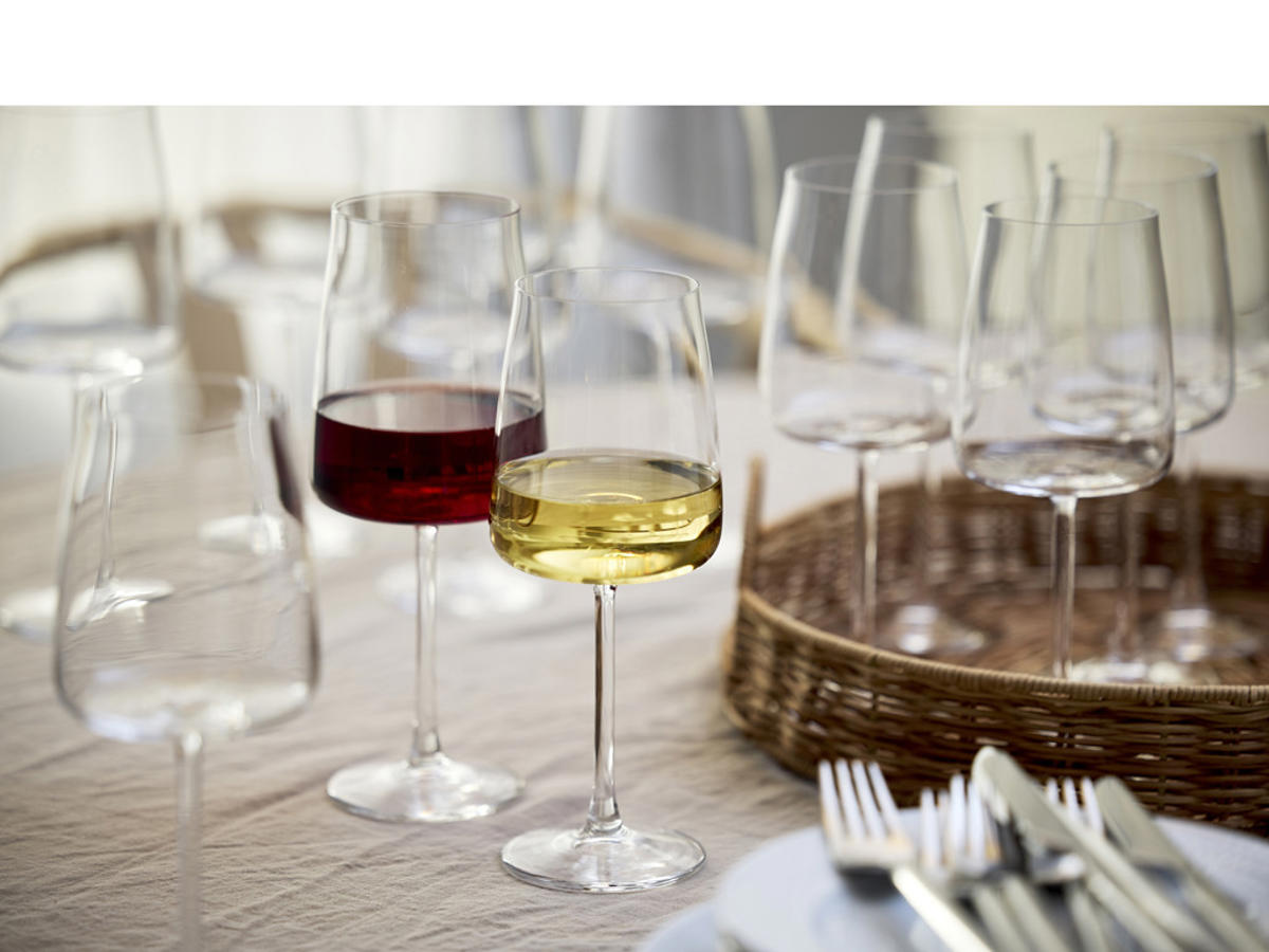 Gaven indeholder 8 stk Zero rødvinsglas 54 cl og 8 stk hvidvinsglas 43 cl.