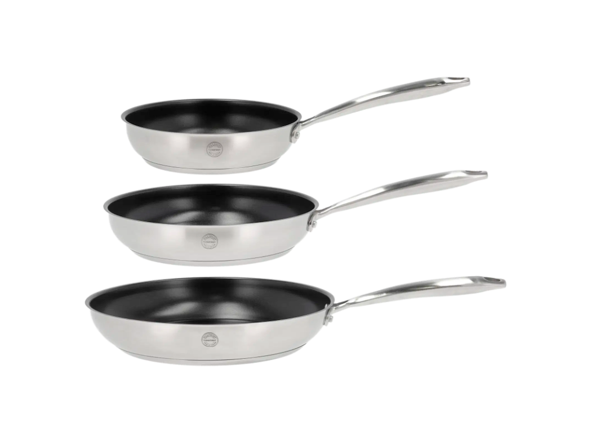 Roya stegepander 20, 24 og 28 cm med keramisk belægning. Roya-serien fra Pillivuyt Gourmet er skabt til at give dig de bedste resultater i køkkenet, uanset om du er nybegynder eller erfaren. Roya-seriens krop er fremstillet af 90 % genanvendt rustfrit stål. Greb og bund er fremstillet af rustfrit stål. Sandwichbunden på 3,6 mm giver en ensartet og effektiv varmefordeling. • Smuk, mat yderside. • Nittet håndtag, der mindsker varmeoverførelsen. • Den keramiske belægning er ekstra hårdfør, har lang levetid og tåler redskaber af både plast, silikone, træ og metal. • Minimalt behov for fedtstof og nem rengøring. • Velegnet til alle varmekilder inkl. induktion. • Tåler ovn op til 240 grader. • Håndopvask anbefales.