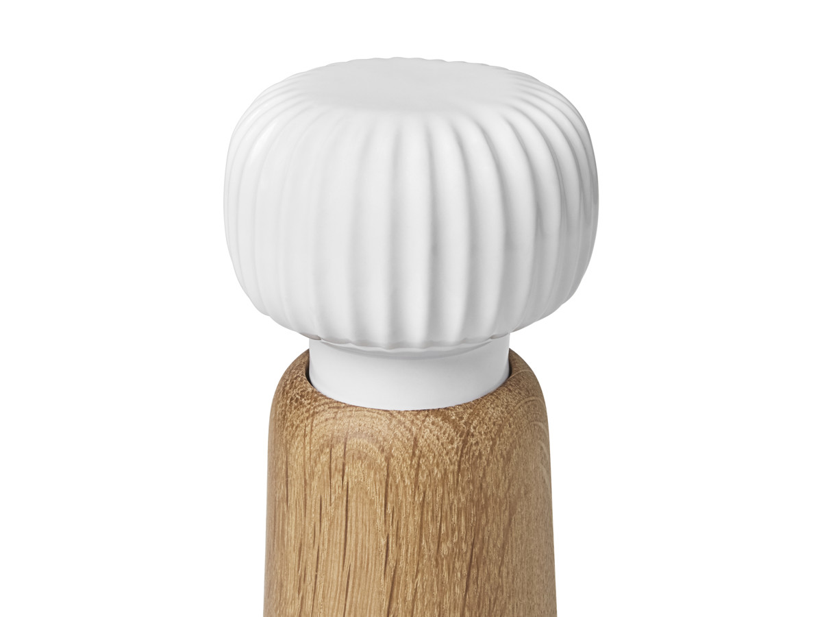 Opdag en elegant kombination af naturlige og holdbare materialer i Kählers modige Hammershøi-stel: glas, egetræ og keramik.