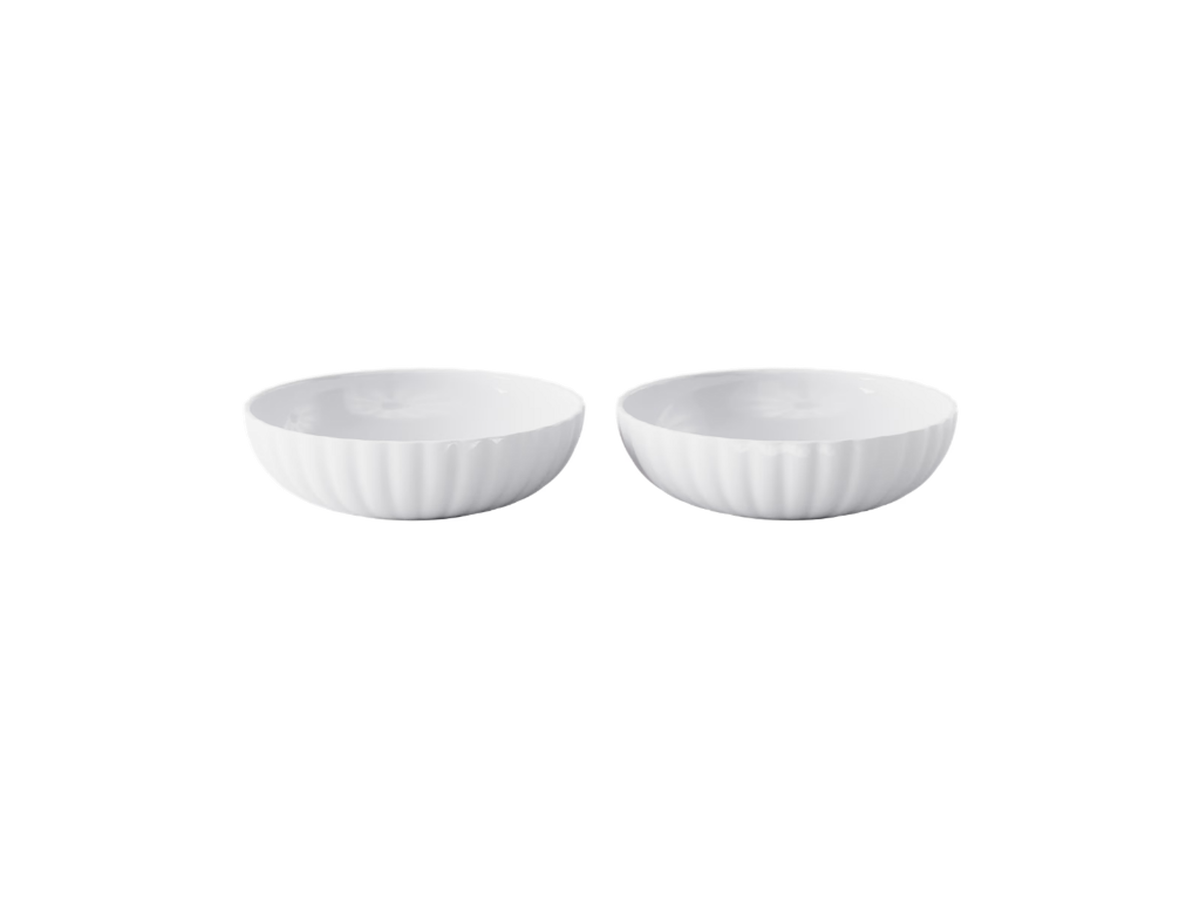 Disse to porcelænsskåle har et smukt, riflet design og er en del af Bernadotte kollektionen. Serien er inspireret af den svenske designer Sigvard Bernadotte, som begyndte sit samarbejde med Georg Jensen i 1930’erne.