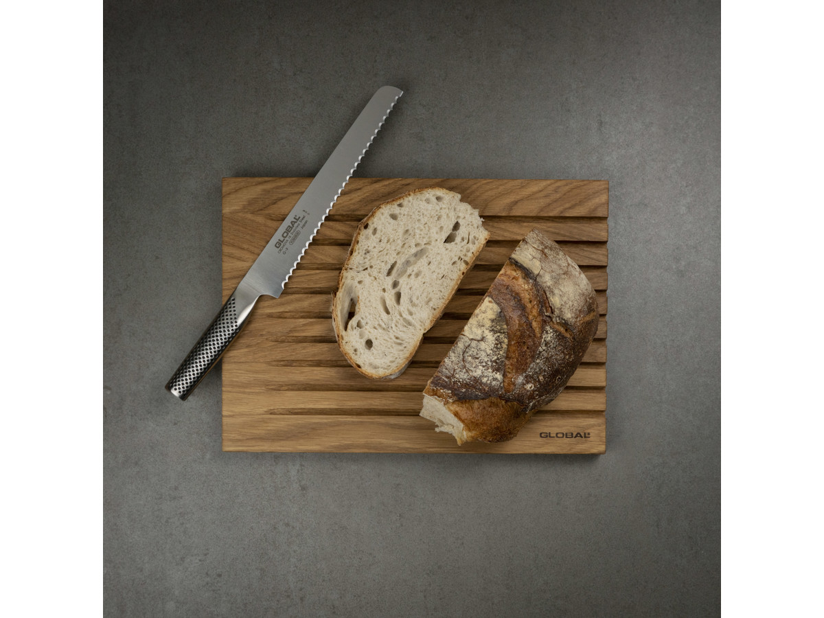 Global sampakke: Skærebræt eg & brødkniv 22 cm