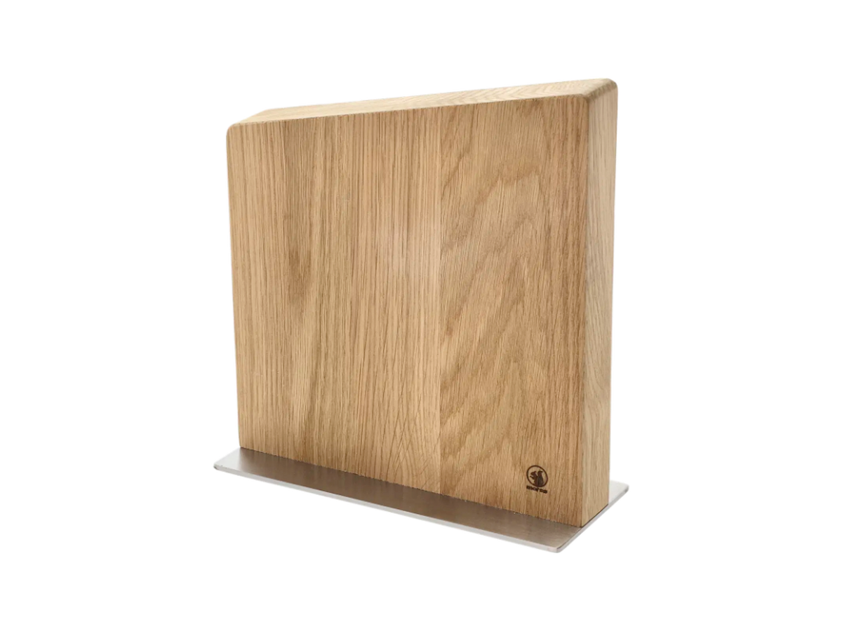 Den elegante knivblok i egetræ står på en plade af rustfrit stål og har skridsikre fødder. Der er en magnet inde i træblokken, og knivblokken fungerer på samme måde som en vægophængt knivmagnet. Der kan sættes knive på begge sider af blokken, hvilket giver mere plads til knive uden at optage for meget plads på køkkenbordet. Overfladen af egetræ er behandlet med naturlak, hvilket gør den glattere og mere modstandsdygtig over for knivmærker. Trædelen på varen er FSC®-certificeret egetræ (FSC-C166612). Morsø Foresta er en serie af smukke kvalitetsprodukter til køkkenet. Foresta er til hverdagskokke og madentusiaster, der sætter pris på lækre produkter i gode materialer. Serien giver dig de bedste forudsætninger for at fremtrylle velsmagende retter, lavet med kærlighed og passion. Foresta er italiensk for skov, og serien tager afsæt i eg som gennemgående materiale. Eg er en smuk og meget modstandsdygtig træsort, der holder i mange år, hvis den bliver passet godt på. Med løbende vedligeholdelse med madolie forlænges levetiden. Med tiden vil træet udvikle sig og blive endnu smukkere.
