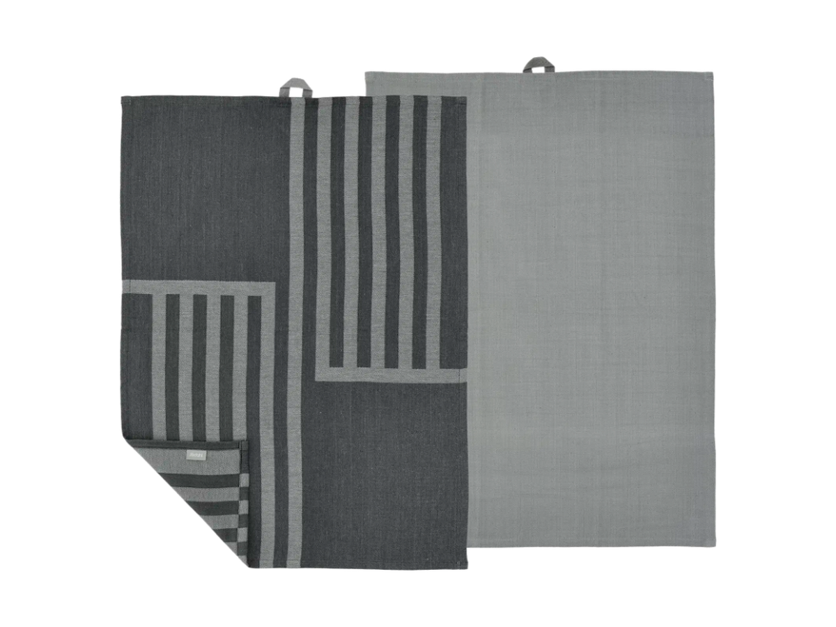 2 stk. 100 % bomuld Ash OEKO-TEX® STANDARD 100 15.HIN.69750 Hohenstein HTTI Dette design afspejler vores kærlighed til rene linjer og minimalistisk elegance. Det sofistikerede motiv bestående af lodrette og vandrette striber er både moderne og klassisk. Det grafiske design bliver komplementeret af et viskestykke i en ensfarvet twillvævning.