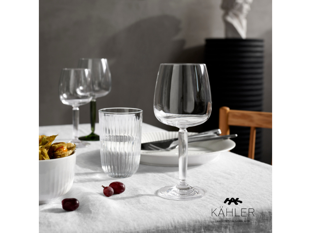Tilføj en ny, men samtidig klassisk dimension i din borddækning med Hammershøi vinsglas og vandglas fra Kähler.