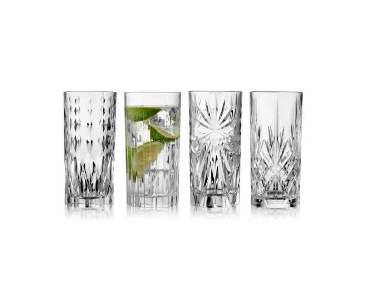 4 stk highballglas 36 cl i fire forskellige mønstre, Melodia, Timeless, Oasis og Marilyn.