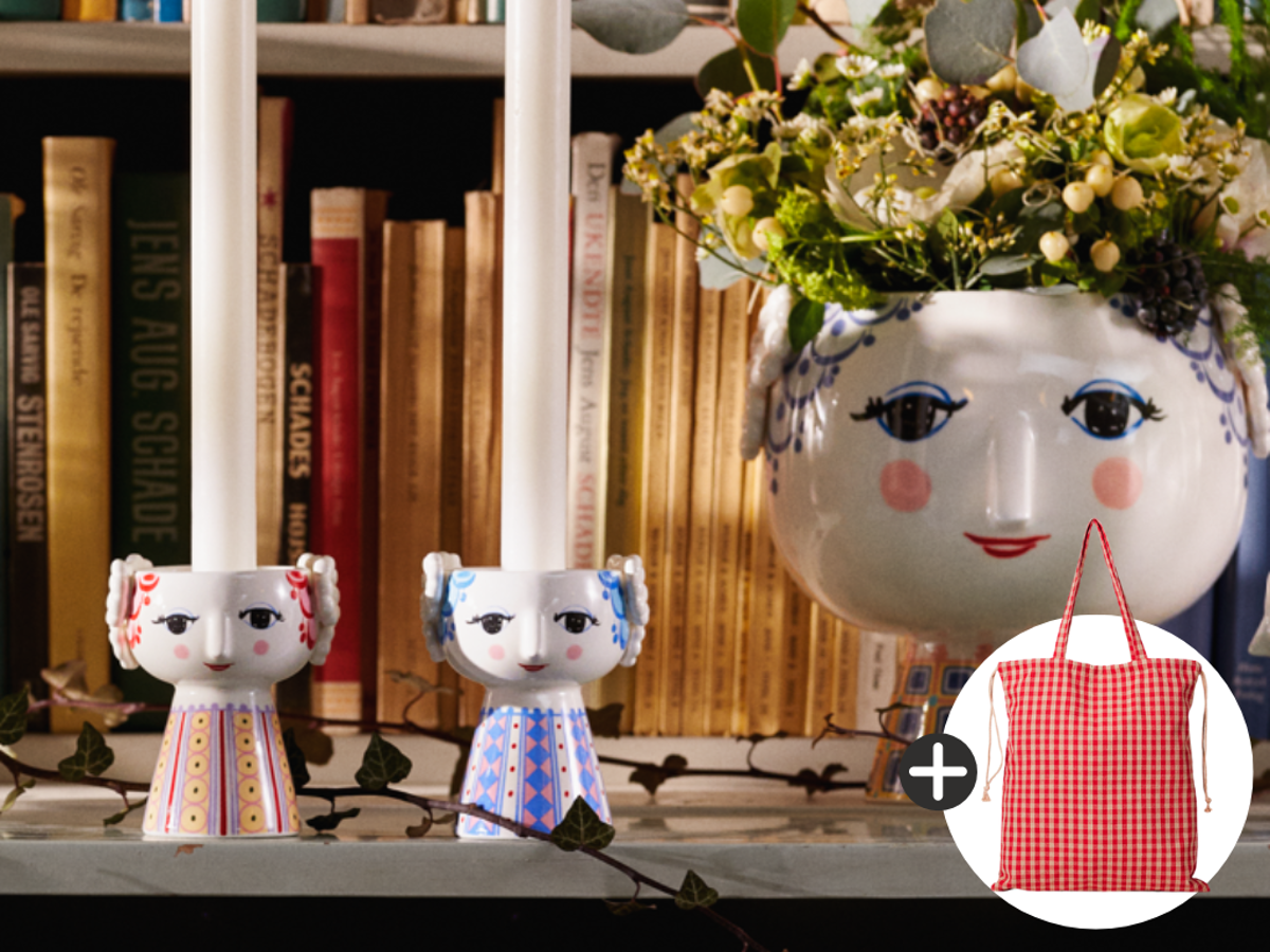 Bjørn Wiinblad Eva urtepotteskjuler + 2 lysestager