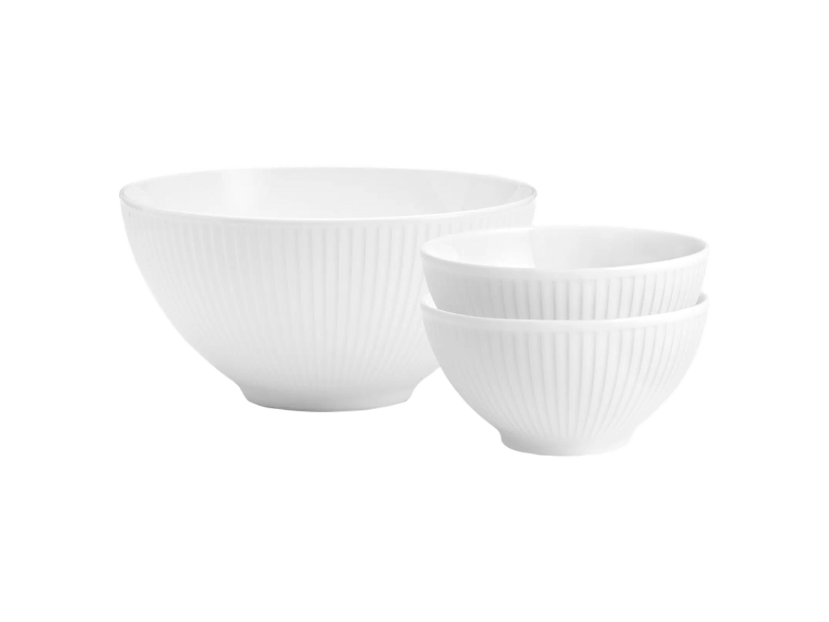 Elegant sæt med en 20 cm skål og to 14 cm skåle i hvid porcelæn.