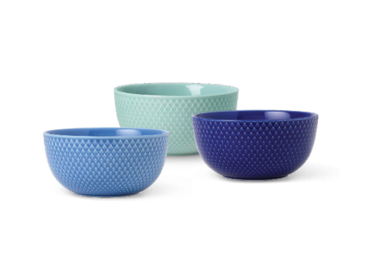 Alle dele kan kombineres på kryds og tværs. I Rhombe kollektonen findes der alt, hvad der skal bruges til en fuld bordopdækning, og nu også med endeløse kreative muligheder i farver.