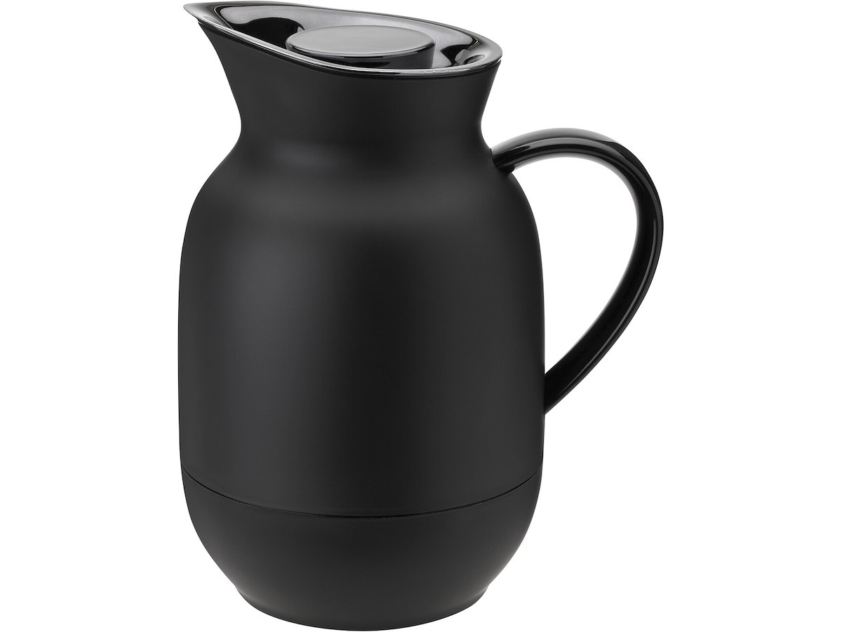 Stelton Amphora Kaffe Termokande kombinerer historisk inspiration med fremtidsorienteret design. Denne elegante 1-liters termokande i Soft Black trækker tydelige referencer til de klassiske oldgræske amforaer – lerkrukker der i antikken blev anvendt til opbevaring og transport af væsker. Den anerkendte danske designer Sebastian Holmbäck har mesterligt fortolket amforaens karakteristiske runde form og markante skuldre, men tilført et moderne, skandinavisk udtryk der gør kanden tidløs og funktionel. Termokanden er ikke blot et smukt designobjekt, men også en praktisk hverdagsgenstand. Den isolerende glasindsats holder effektivt din kaffe eller te varm i flere timer, så du kan nyde en perfekt tempereret drik længe efter brygning. Den stilrene sorte finish i "Soft Black" giver kanden et sofistikeret udtryk, der passer harmonisk ind i ethvert moderne hjem. Produktets højdepunkter: - Rummer 1 liter kaffe eller te - Effektiv varmeisolerende glasindsats - Designet af Sebastian Holmbäck - Fremstillet af PP plast med krombelagte detaljer - Elegant Soft Black finish - Mål: H24 cm / B20 cm / L14 cm For at bevare kandens kvalitet og funktionalitet anbefales det at rengøre den ved at skylle indersiden med lunkent vand uden brug af rengøringsmidler. Undgå flaskerensere eller andre hårde redskaber, da den tynde glasvæg let kan beskadiges. Tør kanden af med en blød klud eller et viskestykke efter brug. Bemærk at kanden ikke tåler maskinopvask. Med Stelton Amphora termokanden får du ikke blot et funktionelt produkt til din daglige kafferutine, men også et stykke dansk designhistorie, der forener fortid og fremtid i et tidløst formsprog.