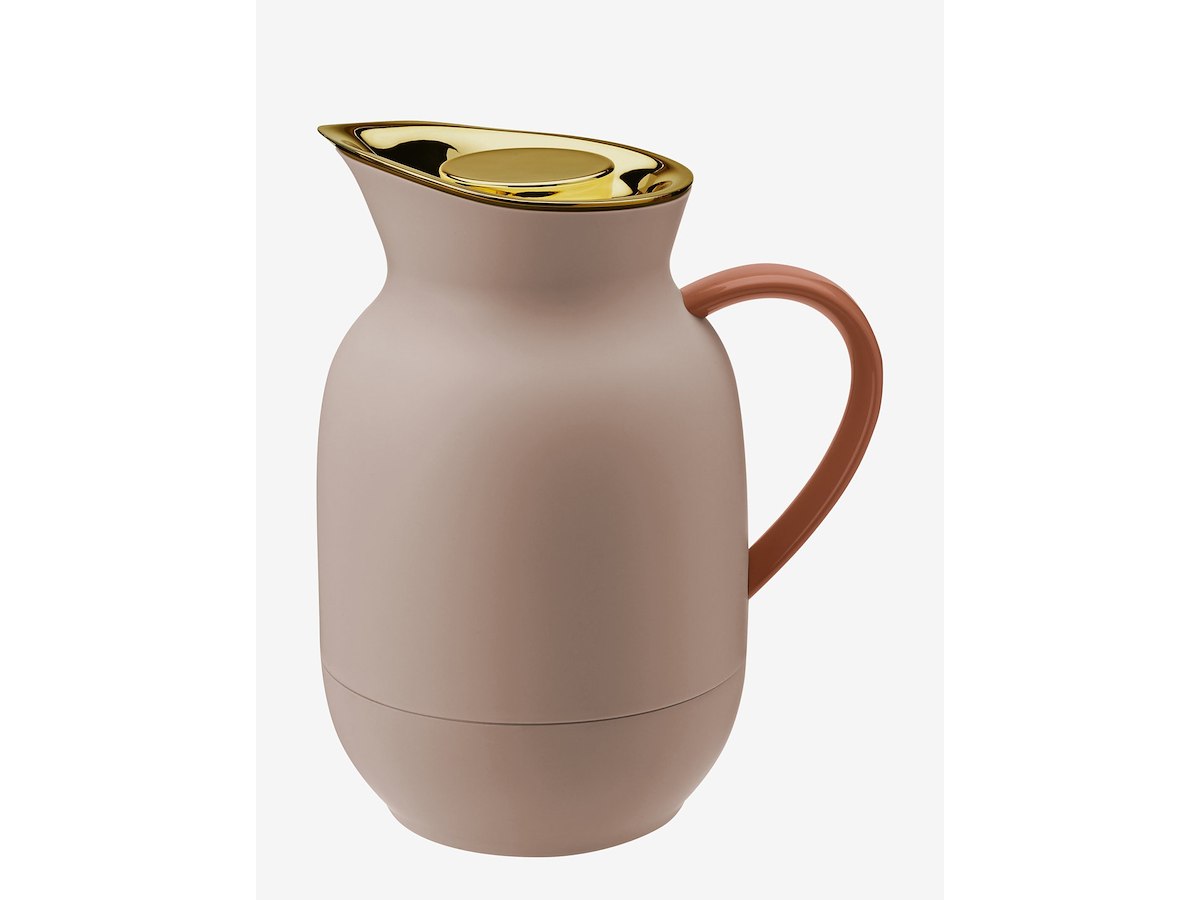 • Både formen og navnet på Amphora, er inspireret af de oldgræske lerkrukker, som blev brugt til at opbevare og transportere olie og vin. Formen, med den runde krop og de markante skuldre, har inspireret formgivere gennem århundreder. Amphoras formsprog bliver under¬streget af kompositionen af farver og materialernes overflade i blank og mat. Indeni er Amphora termokanden en klassisk termokande med en glasindsats, som holder kaffen eller teen varm i timevis. Termokan-dens bund kan skrues af, hvilket muliggøre at glasindsatsen kan skiftes, hvis den skulle gå i stykker. På den måde forlænges kandes levetid til gavn for pengepungen og miljøet. Termokanden er udstyret med en glasindsats, som holder på varmen i timevis. Bunden kan tages af, så glasindsatsen kan udskiftes, hvilket forlænger kandens levetid. BPA- og phthalatfri