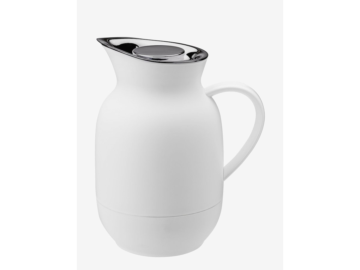 • Både formen og navnet på Amphora, er inspireret af de oldgræske lerkrukker, som blev brugt til at opbevare og transportere olie og vin. Formen, med den runde krop og de markante skuldre, har inspireret formgivere gennem århundreder. Amphoras formsprog bliver under¬streget af kompositionen af farver og materialernes overflade i blank og mat. Indeni er Amphora termokanden en klassisk termokande med en glasindsats, som holder kaffen eller teen varm i timevis. Termokan-dens bund kan skrues af, hvilket muliggøre at glasindsatsen kan skiftes, hvis den skulle gå i stykker. På den måde forlænges kandes levetid til gavn for pengepungen og miljøet. Termokanden er udstyret med en glasindsats, som holder på varmen i timevis. Bunden kan tages af, så glasindsatsen kan udskiftes, hvilket forlænger kandens levetid. BPA- og phthalatfri