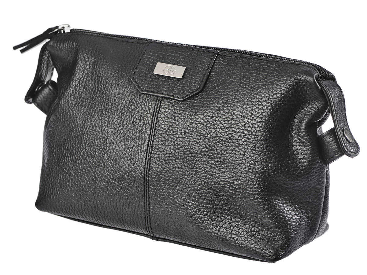Toilettaske i varmpræget læder. Stort hovedrum med plads til dine essentielle ting på farten.