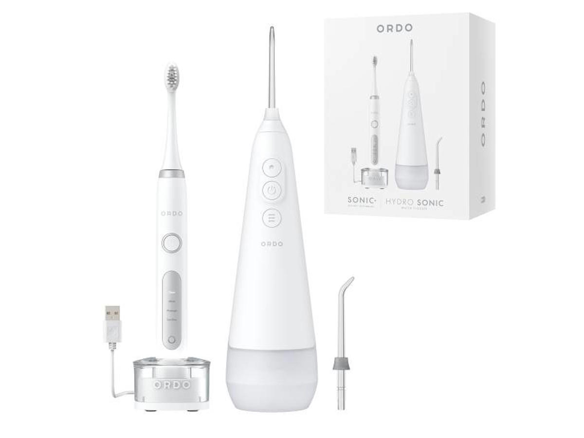 TANDBØRSTE OG FLOSSER i hvid ORDO / Ordo Sonic+ and Water Flosser Ordo Sonic+ Toothbrush, som er designet og godkendt af tandlæger, er en elektrisk tandbørste i høj kvalitet og stilfuldt design, som giver en dybere, individuel rensning.
