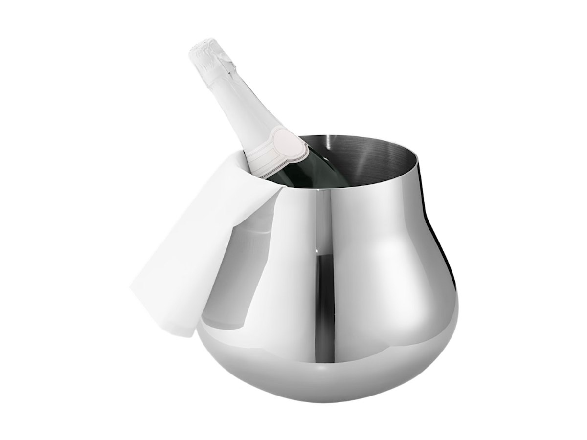 I denne minimalistiske køler i rustfrit stål med organisk, skulpturel form holder din vin eller champagne den helt rigtige temperatur. Den er stor nok til to flasker vin eller til en champagneflaske og fås med sin helt egen hvide serviet, så du kan servere drypfri drikkevarer med stil!