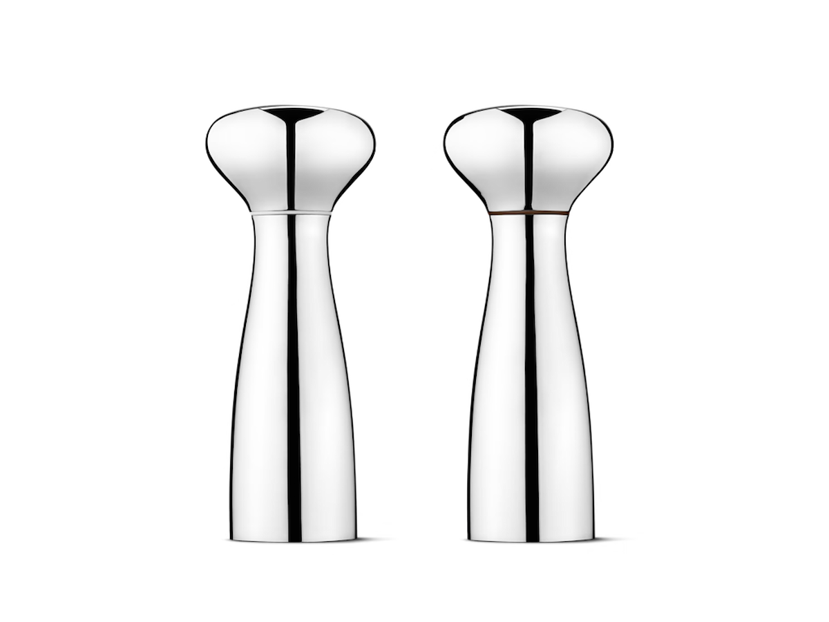 Dette smukke salt og peber-sæt er et regulært stilstudie i underspillet minimalisme. Al pynt er fjernet, så det der står tilbage er en ren organisk form i højglanspoleret rustfrit stål. Form og funktion går op i en højere enhed, og kværnenes ergonomiske udformning gør, at de passer perfekt i hånden. Den justerbare all-grind teknologi sikrer derudover den rigtige størrelse af både salt- og peberkorn.