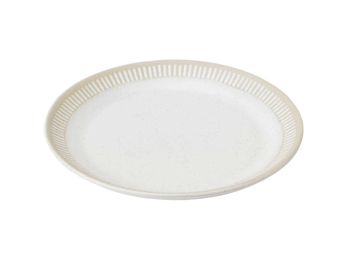 Knabstrup Keramiks Colorit-serie tilfører et forfriskende farvestænk til den danske keramiktradition med denne elegante 27 cm tallerken i den varme sandfarve. Tallerkenen repræsenterer en moderne fortolkning af det ikoniske Knabstrupstel fra 1960'erne, hvor det tidløse design møder nutidens farvepalet. Den karakteristiske rillede kant giver tallerkenen et distinkt udtryk, der både hylder arven fra fortiden og bringer et moderne touch til din bordopdækning. Sandfarven er et jordnært og alsidigt valg, der harmonerer smukt med både minimalistiske og farverige borddækninger. Den neutrale tone kan danne en rolig base for din anretning eller indgå i et spændende farvemix med seriens øvrige nuancer. Stentøjets robuste kvalitet sikrer, at tallerkenen ikke kun er æstetisk tiltalende, men også praktisk til hverdagsbrug. Tallerkenens diameter på 27 cm gør den ideel som hovedtallerken til både hverdagsmåltider og festlige lejligheder. Den håndværksmæssige kvalitet, som Knabstrup Keramik er kendt for, afspejles i hver detalje af denne tallerken, fra den omhyggeligt formede kant til den jævne glasering.