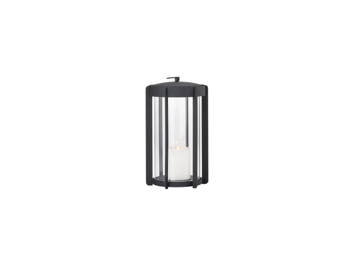 • Firefly-lanternerne med glassider findes i to højder, hhv. 25 og 35 cm og er udført i pulverlakeret stål. Topstykket er let at løfte af, når et nyt lys skal sættes i. Du vipper bare den lille silikonestrop op, og lægger den ned igen, når lyset er skiftet. Der er noget tidløst over udtrykket, og designinspirationen er da også hentet flere hundrede år tilbage, hvor datidens vogtere gik med lanterner gennem byerne. Her er en moderne version, der er klar til at kaste hyggelys på terrasser og altaner, når tusmørket melder sig.