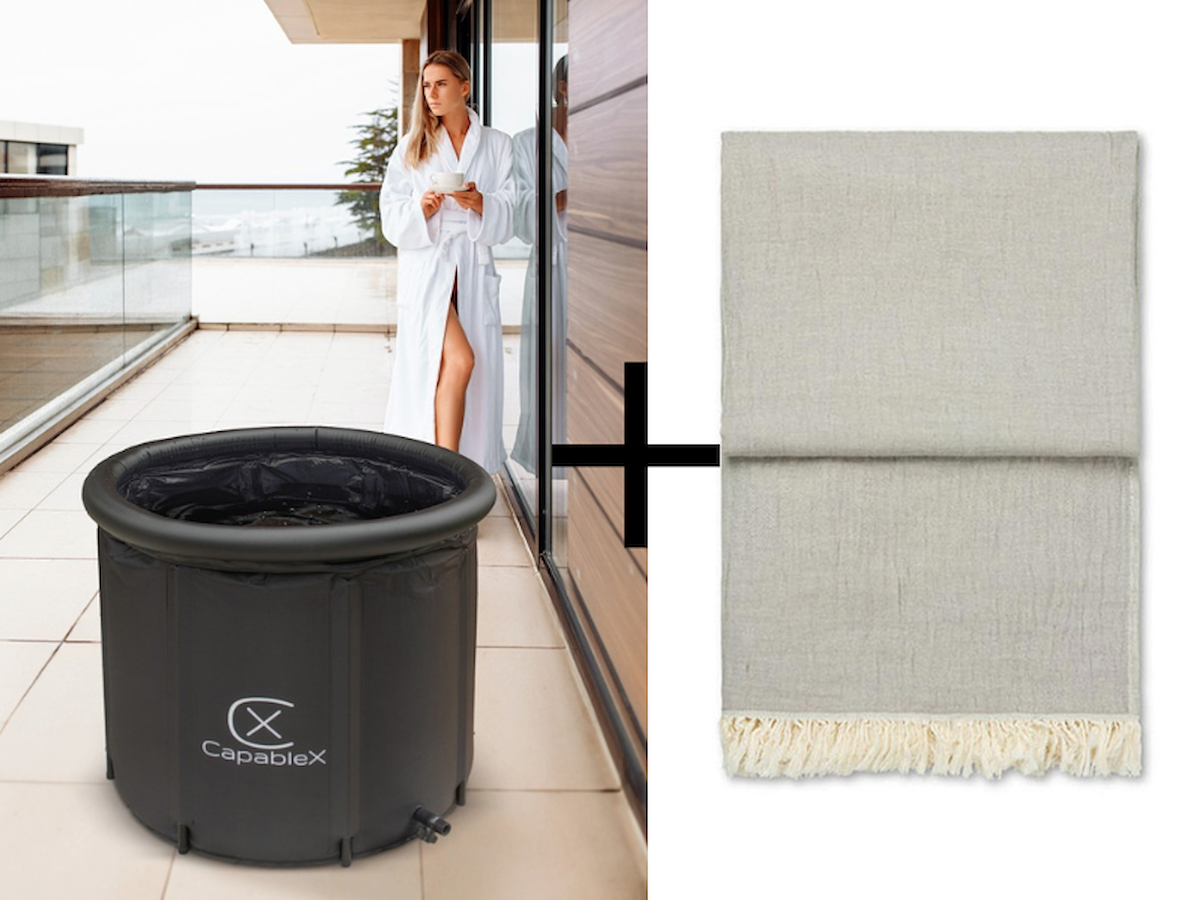 Udendørs isbad leveres med både med beskyttelsescover samt et låg med en oppustelig ring.