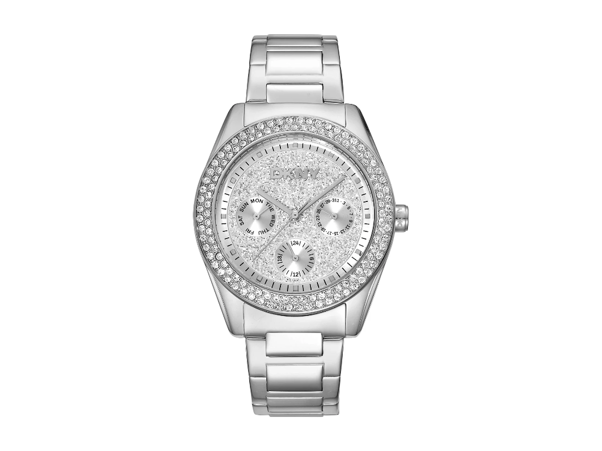 DKNY Chambers Multi Glitz Dameur i rustfrit stål med guld PVD og sten. Krystalfarvet urskive - Ø 36 mm