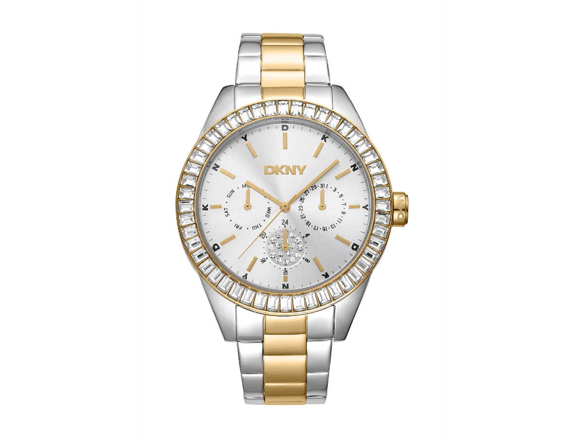 DKNY Nolita Multi Glitz Dameur i rustfrit stål med guld PVD og sten. Sølvfarvet urskive - Ø 40 mm