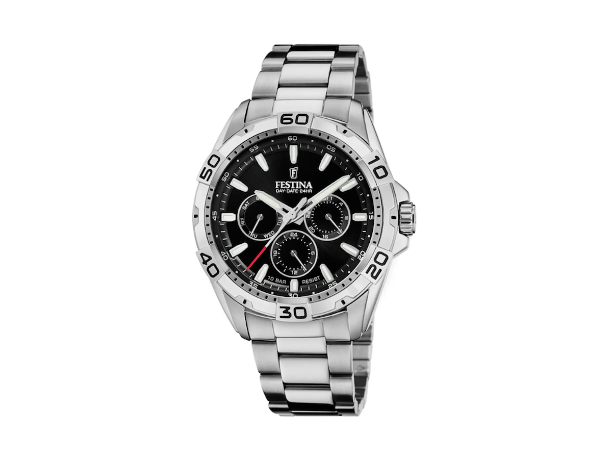 Festina herreur i stål - vandtæthed 10 ATM - sort skive