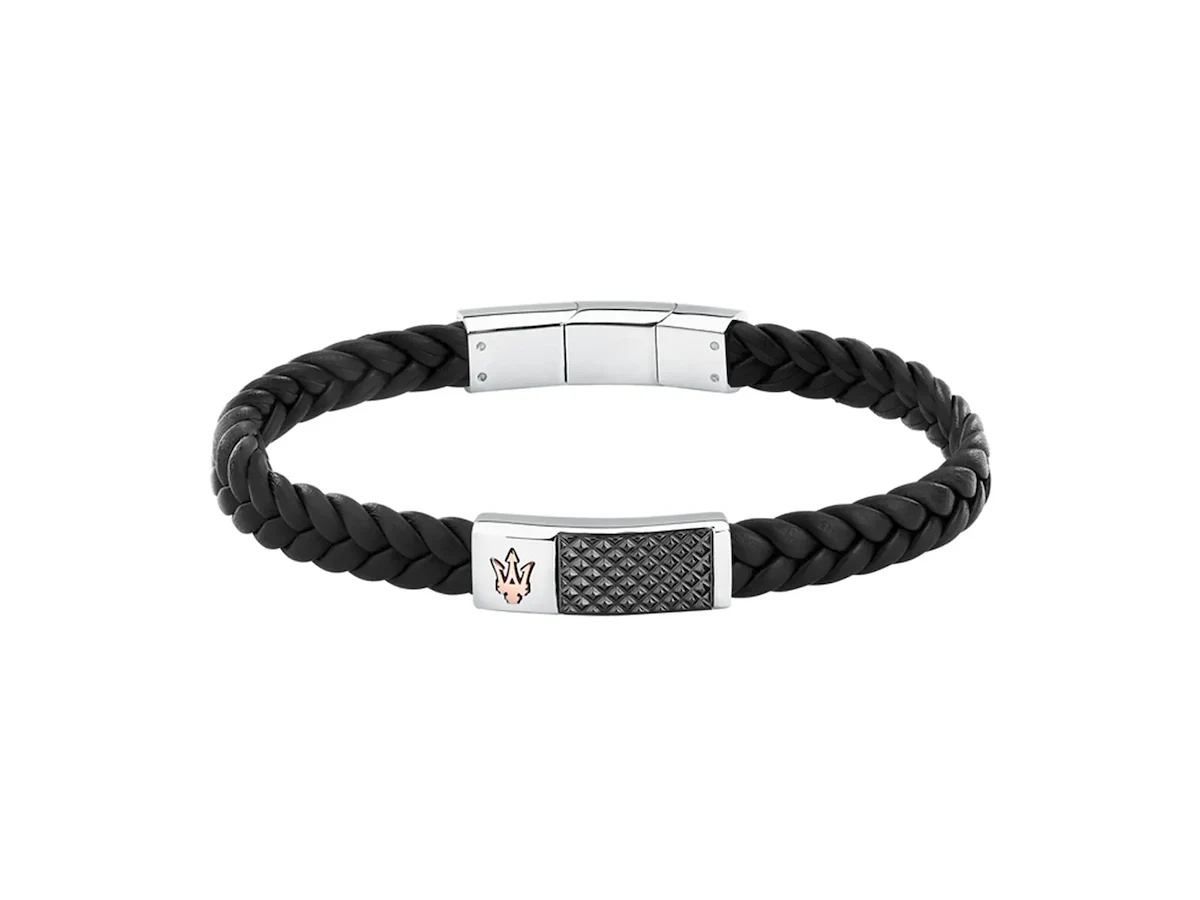 • Maserati armbånd i flettet læder - stål og gunfarvet
