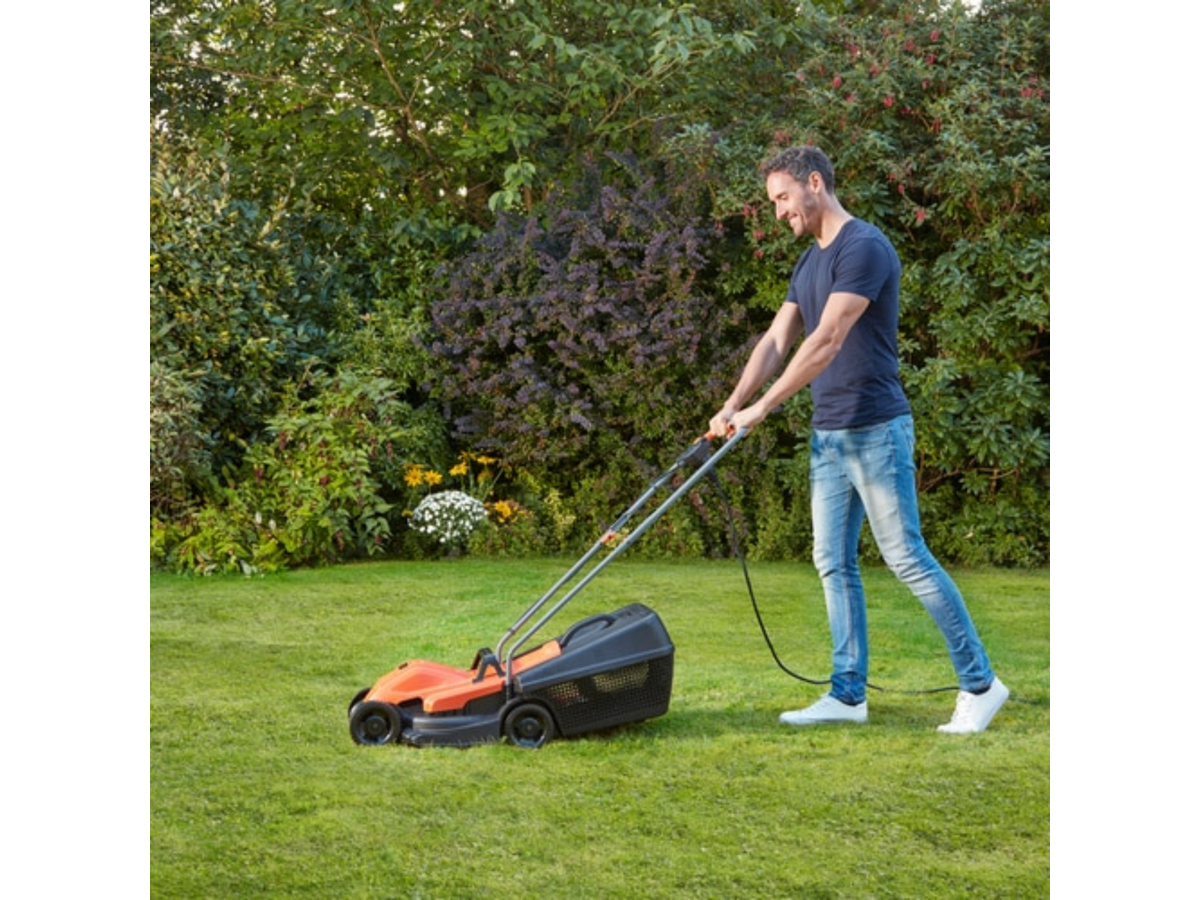 Kraftfuld 1200W 32CM kompakt plæneklipper.