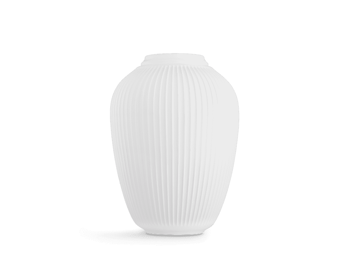Designet findes i hvid eller antracit fajance med de ikoniske riller og en underspillet krave, der holder blomster og grene smukt på plads.
