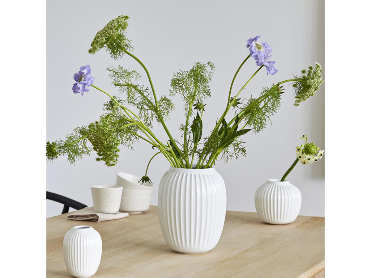 Gaven indeholder: 1 x Hammershøi Vase H21 cm hvid, 1 x Hammershøi Vase H13 cm hvid og 1 x Hammershøi Vase H10,5 cm hvid.